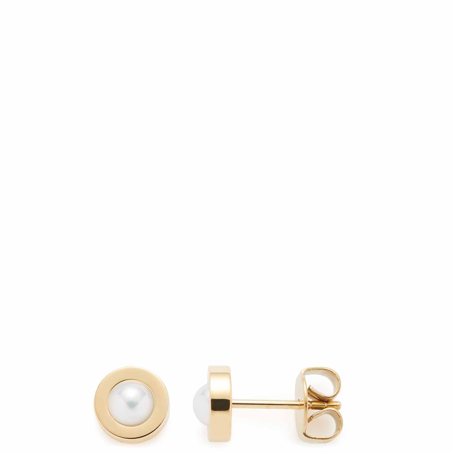 Ohrschmuck Isa als zeitlos schönes Sommer-Special überzeugt mit schlichter Präsenz. Die runden, flächigen Stecker tragen in ihrer Mitte eine Süßwasserzuchtperle.