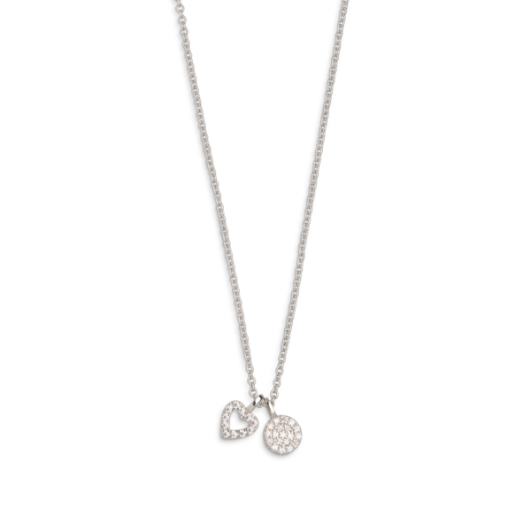 Unbegreiflich schön. Zwei kleine Anhänger pendeln von einer zarten Sterling Silber Kette. Die Anhänger, welche die Form eines Herzens und Kreises einnehmen, zieren funkelnde Zirkonia Steine. Damit bist du sowohl für die Arbeit, als auch für einen After Work Drink perfekt gekleidet.